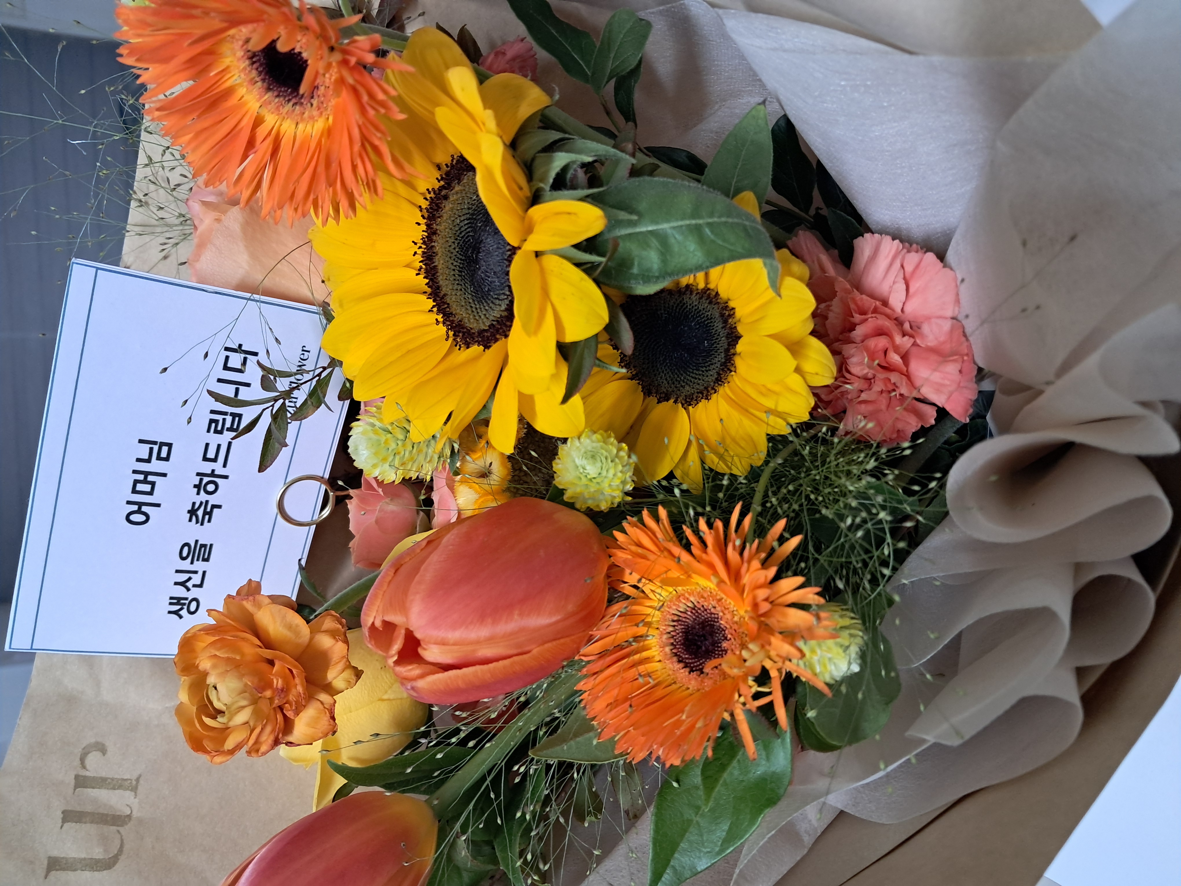 둘째 딸이 정성껏 준비한 케이크와, 큰사위가 건넨 예쁜 꽃다발 덕분에 더욱 따뜻하고 감동적인 시간이 되었답니다. 💐